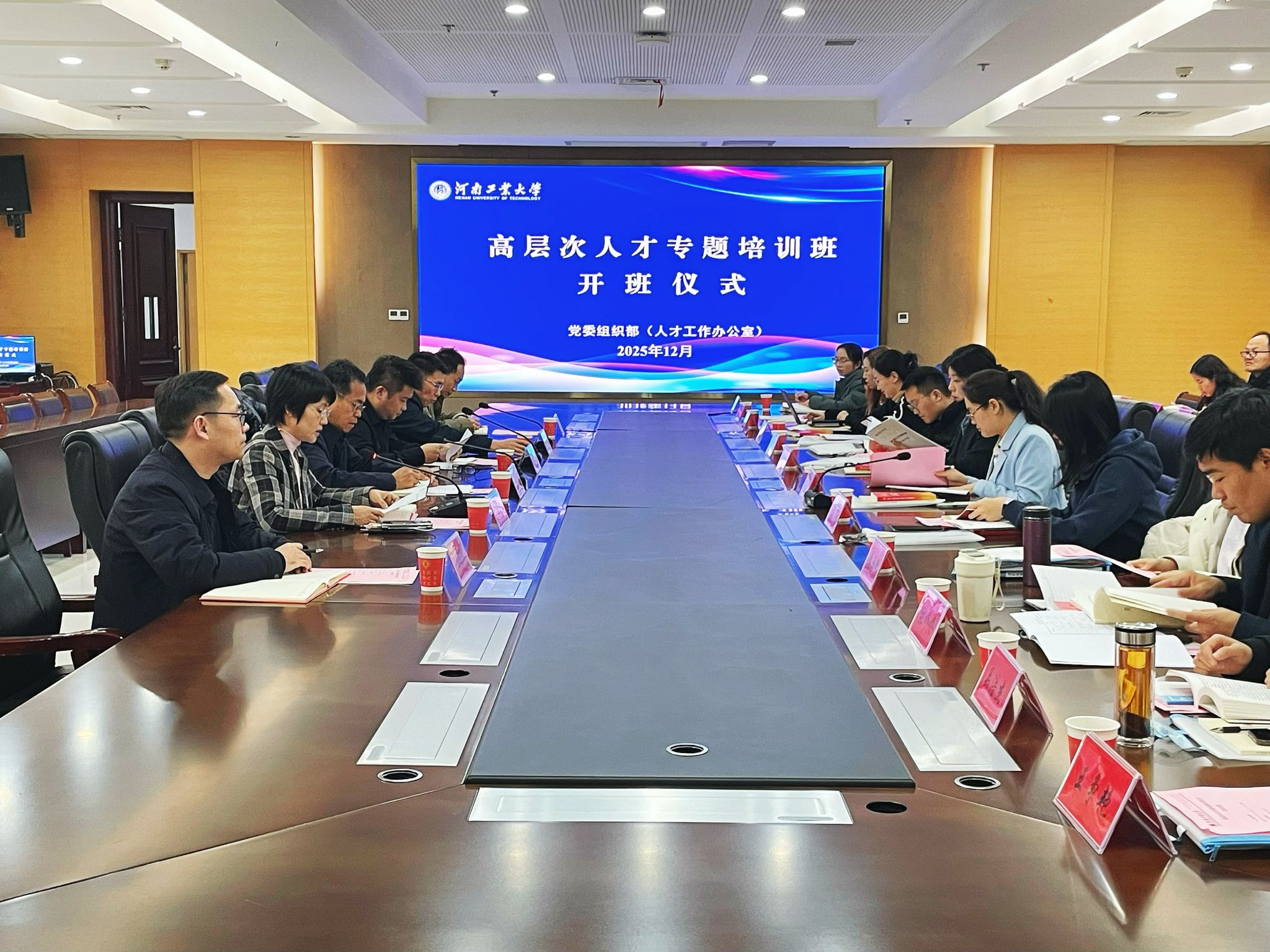 为深入学习贯彻党的二十大和二十届历次全会精神,全面落实中央、我省和学校人才工作会议精神,推进人才强校战略实施,全面提升高层次人才素质能力,12月9日下午,学校2025年高层次人才专题培训班开班仪式在行政楼D203会议室举行。校党委副书记、工会主席周相寅,学术副校长李鹏出席开班仪式,组织部、人事处负责同志以及来自全校各学院高层次人才代表等50余人参加培训。仪式由党委组织部部长、人才工作办公室主任王良主持。