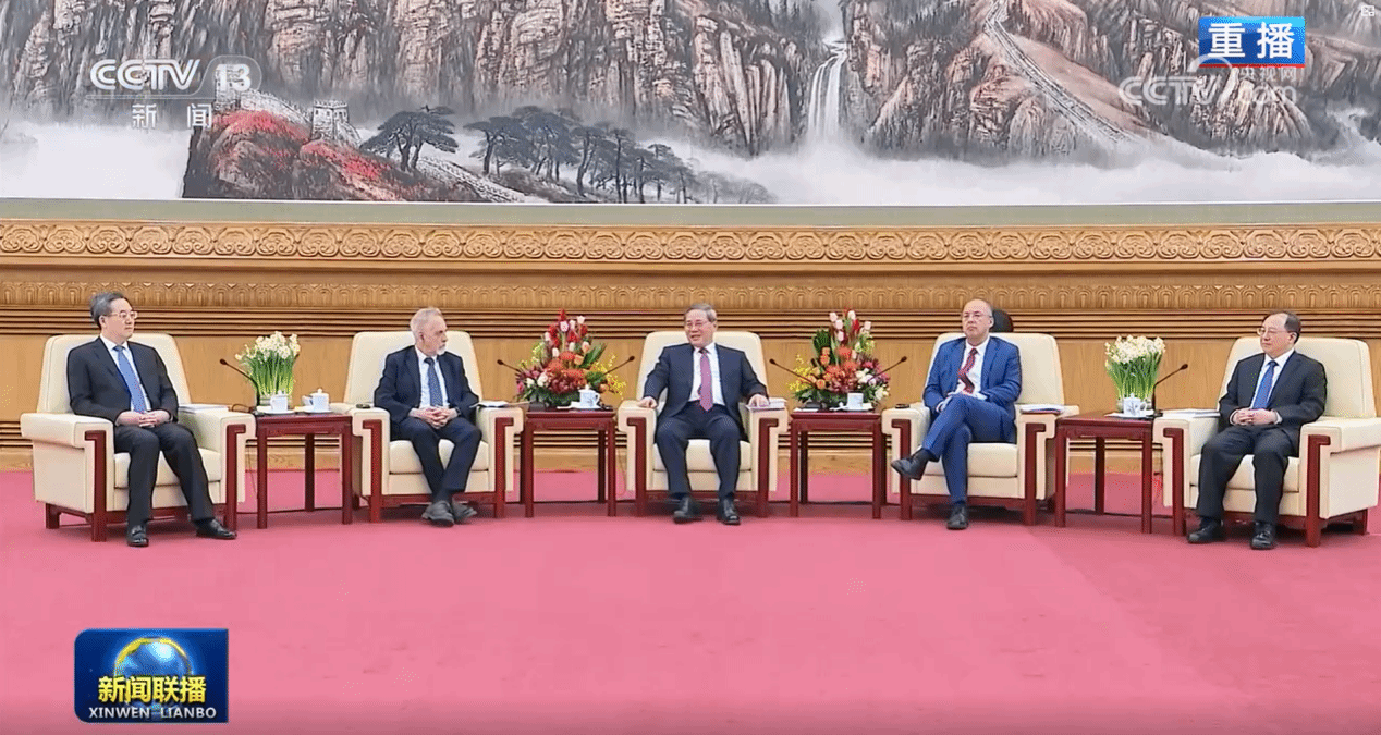图1 李强同外国专家举行新春座谈会 丁薛祥出席(《新闻联播》截图)