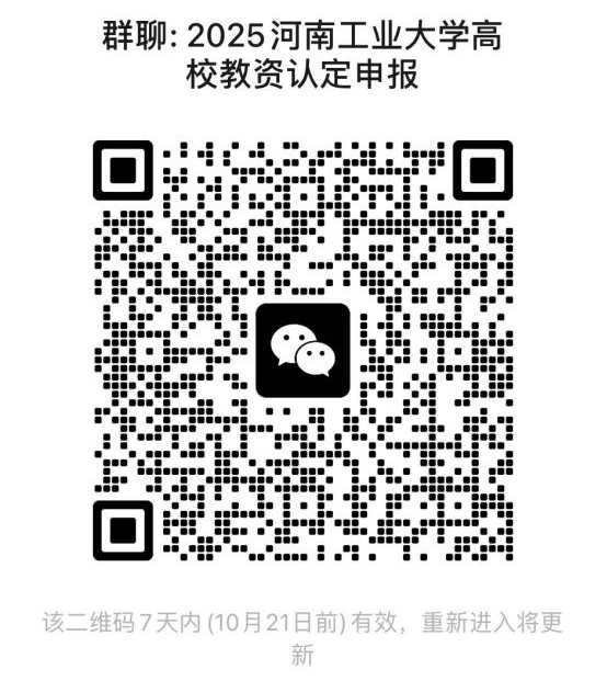 请参加2025年下半年教师资格认定的具有博士学位的新入职教师(需公开招聘手续审批通过)扫码加群(二维码如下图所示)。注意:符合此条件的申报人为河南工业大学2024年博士研究生公开招聘第三批聘用人员,名单详见网站(https://rsc.haut.edu.cn/info/1005/12361.htm)